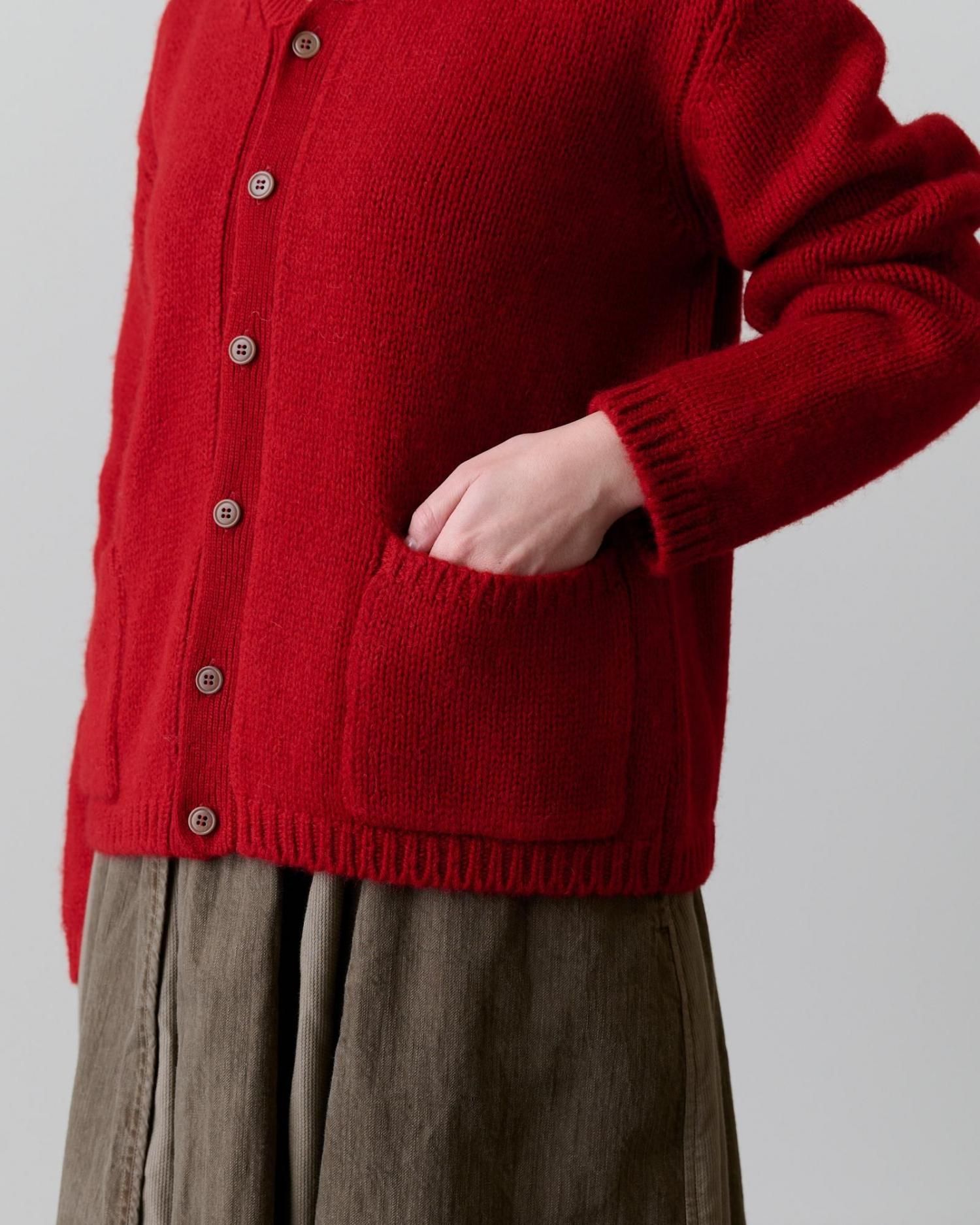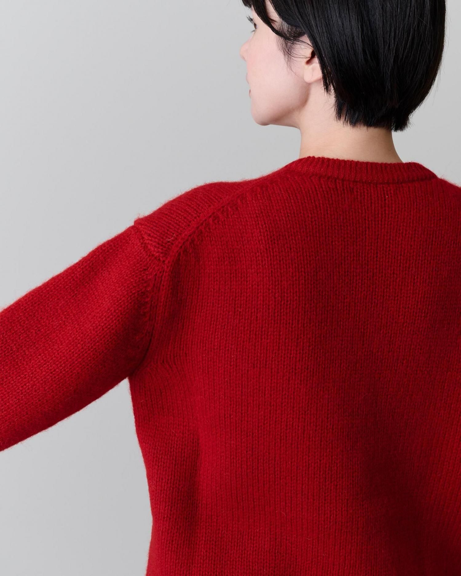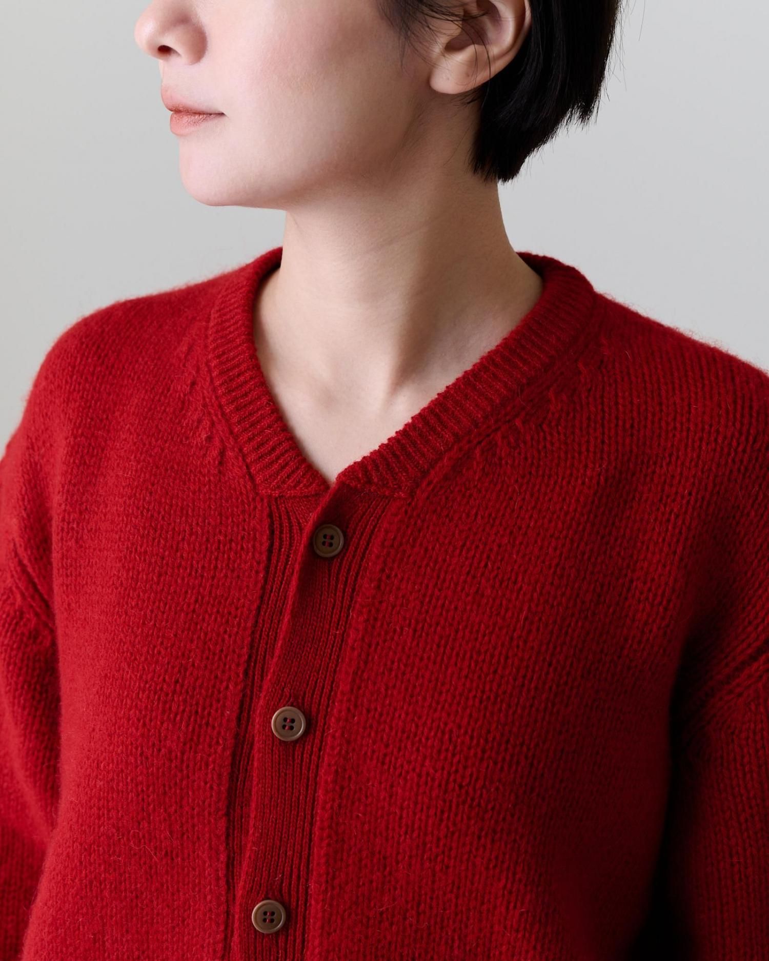 短めの丈はボトムスを選ばず、控えめのVネックはカーディガンとしてはもちろんのこと、プルオーバーとしての着こなしも楽しめます。