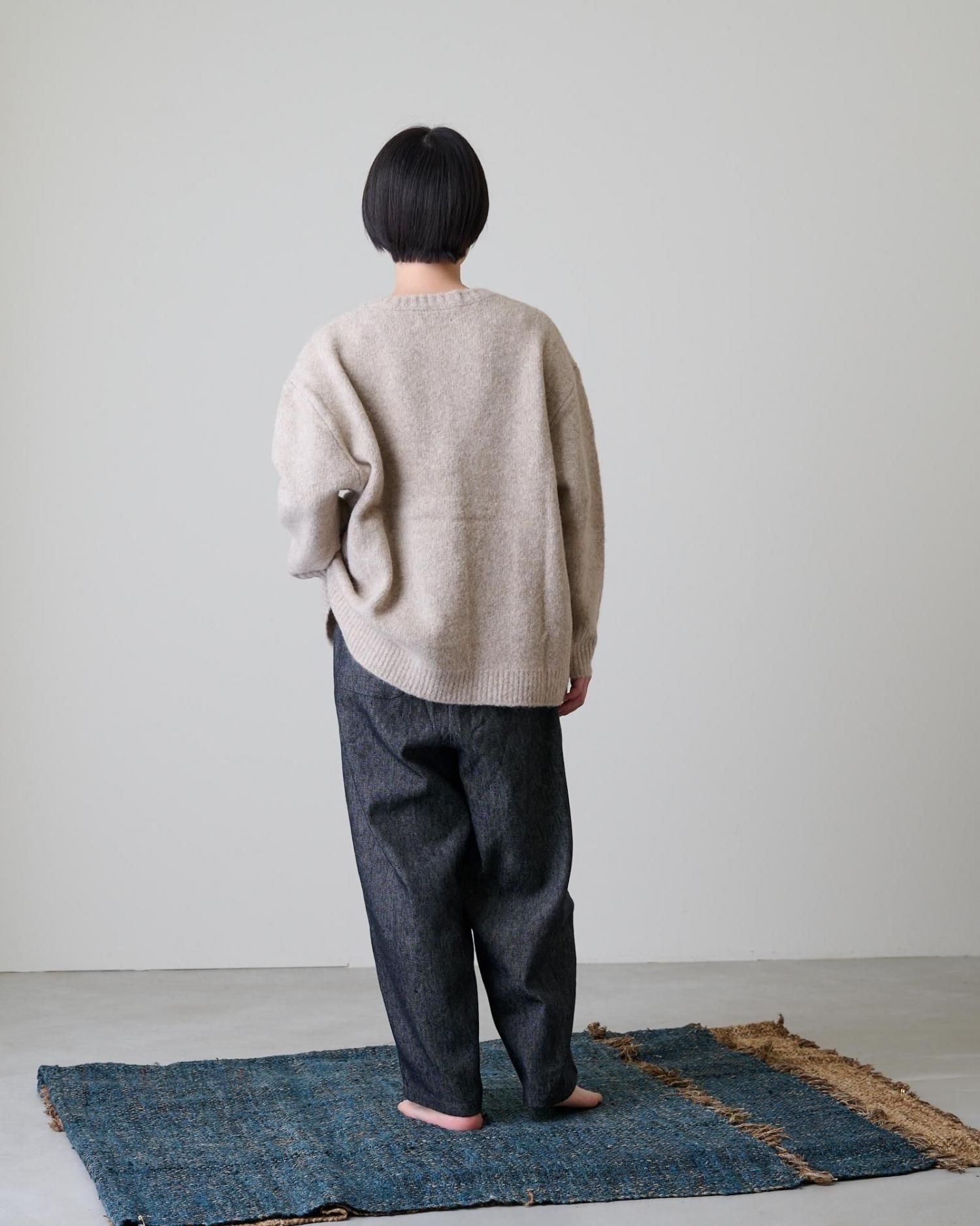 リサイクルナイロンを加えることで糸の強度を高め、お家で手洗いもできる、ケアのしやすいニットに仕上げています。