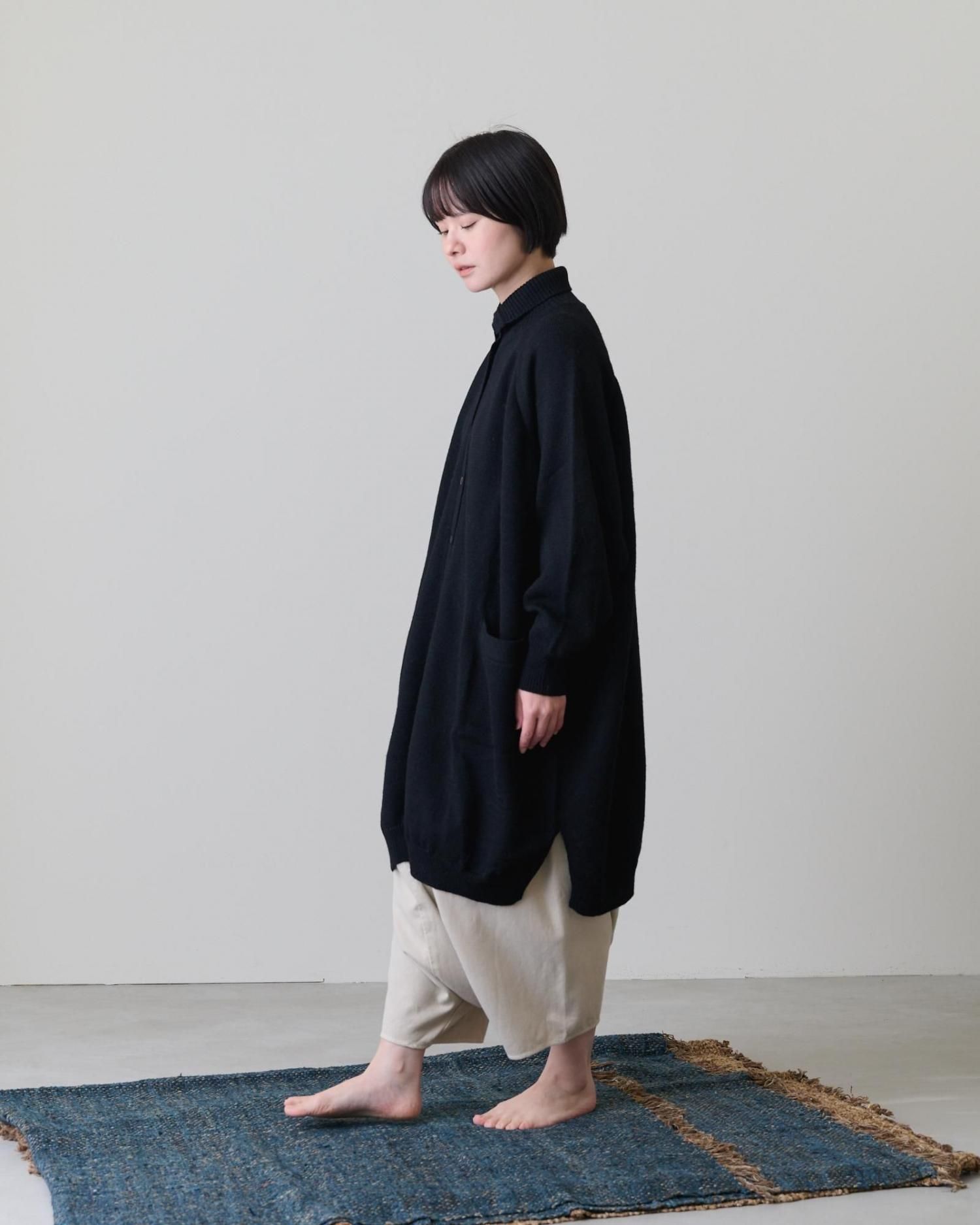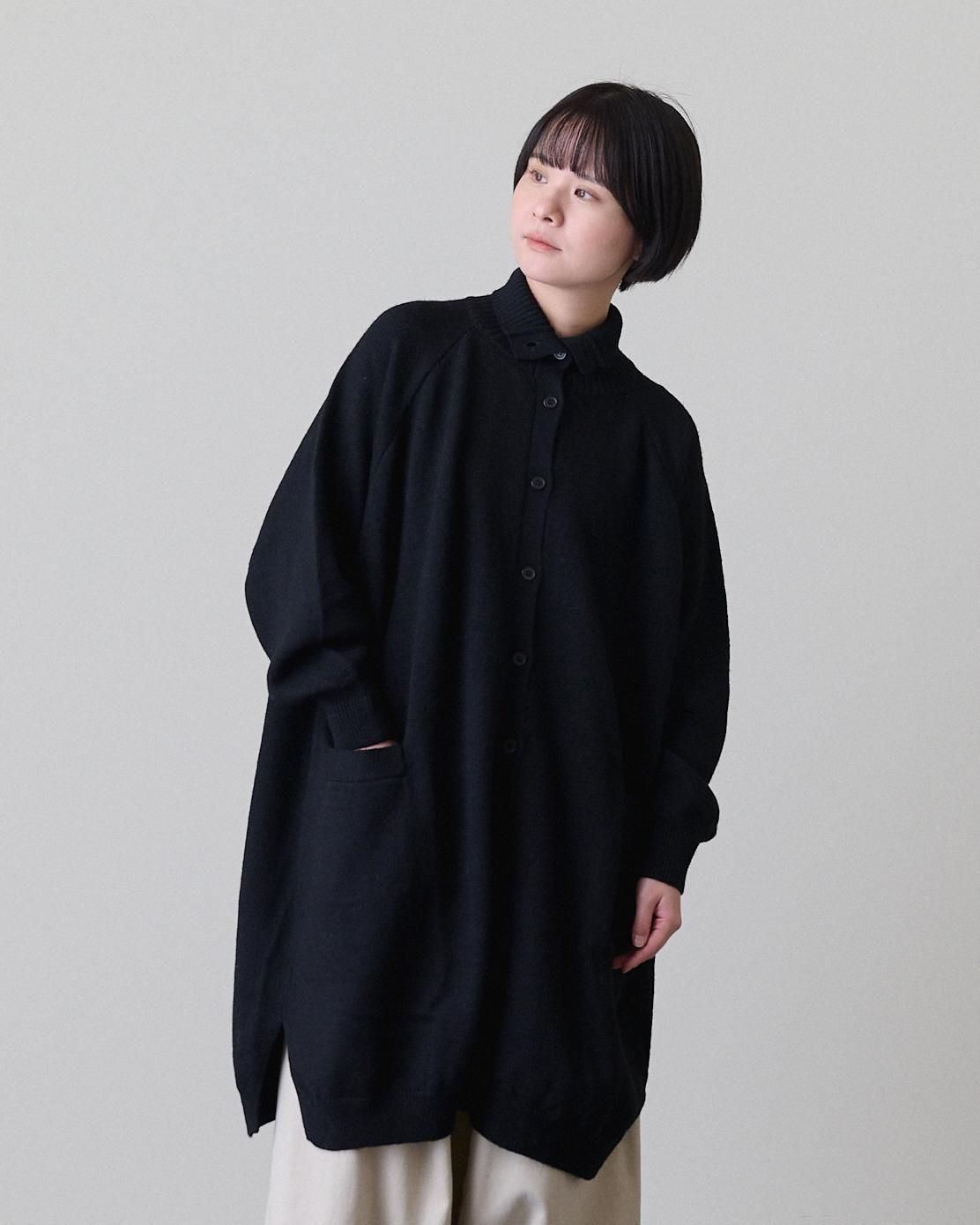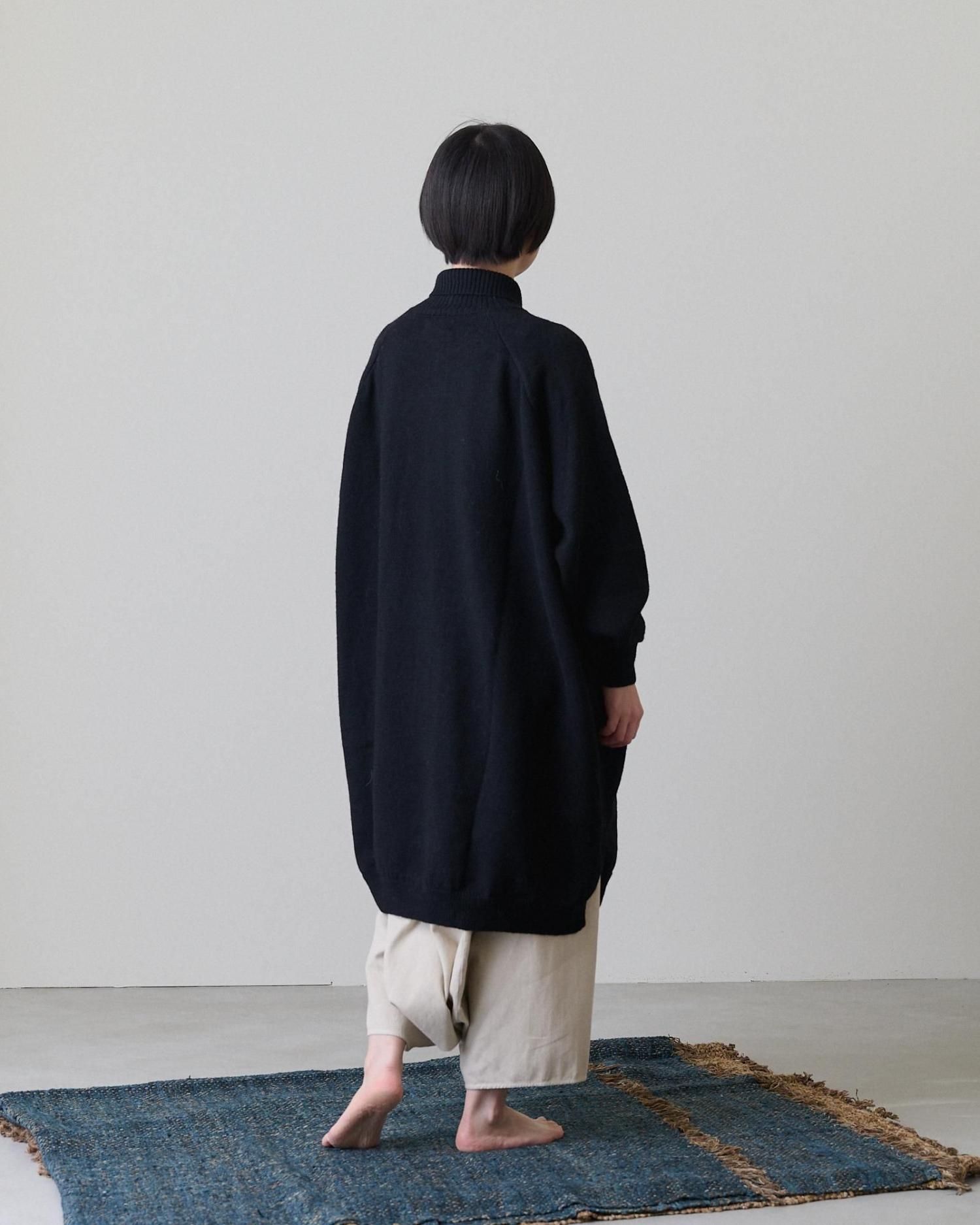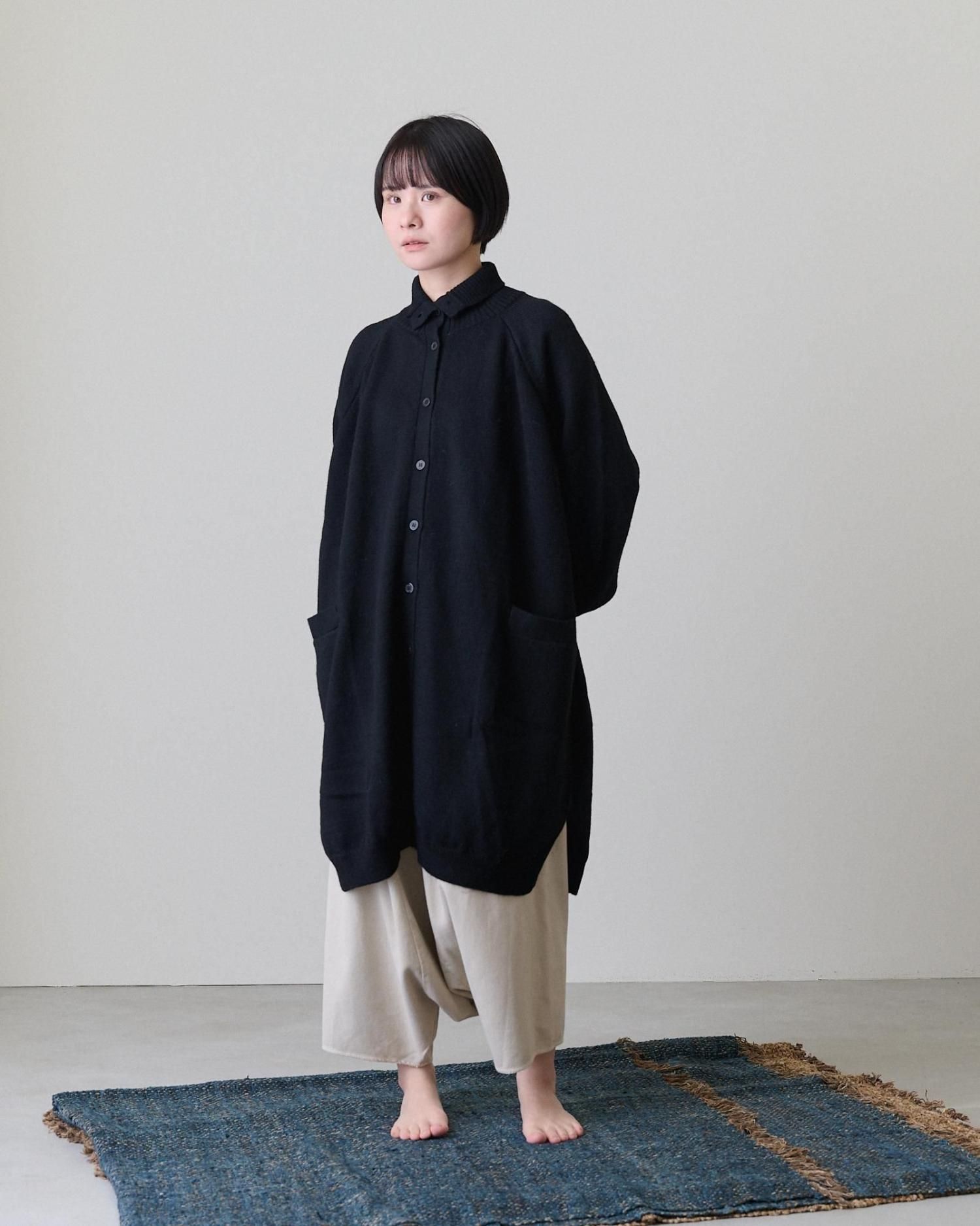 お袖はラグランスリーブになっているので、中に厚手のものを着込んでも袖ぐりや肩周りが窮屈にならずリラックスして着られます。