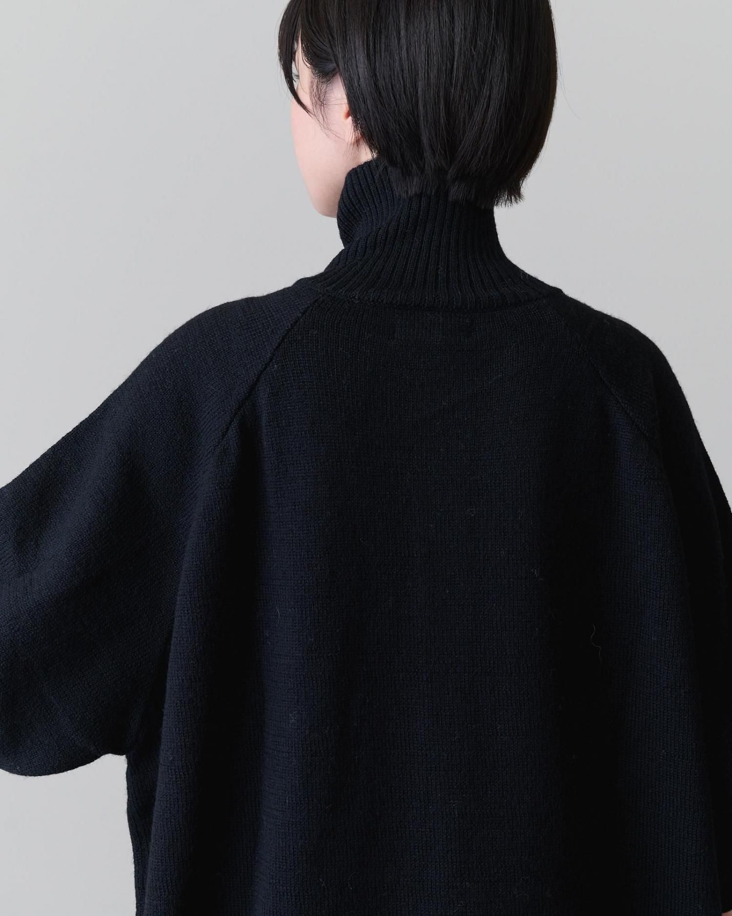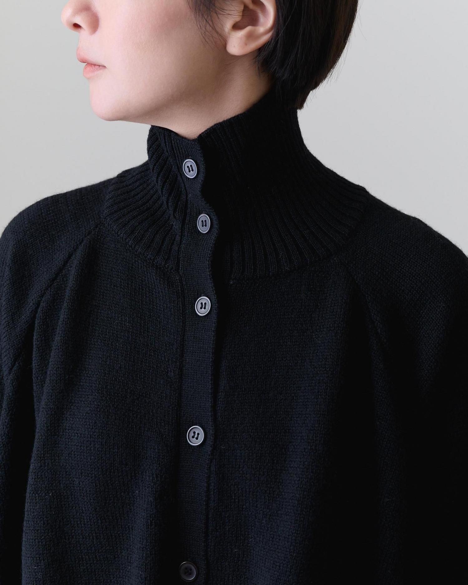 タートルネックの襟元はボタンを閉じてタートルとして着ても、開けて襟のように見せても可愛く、異なる印象の着こなしが楽しめるのも魅力です。