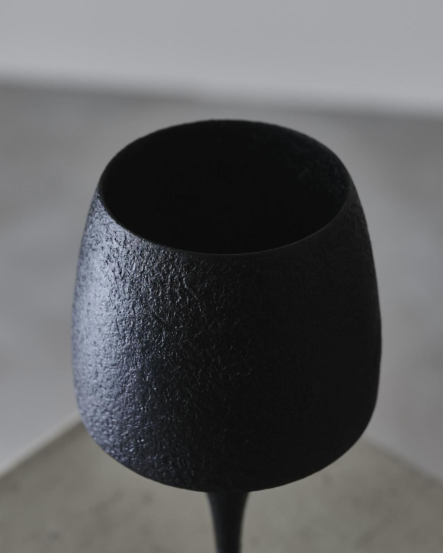 マットな質感と凹凸がもたらす独特な表情は、黒という色に陰影を刻み、立体的で厚みのある美しい黒色を生み出しています。