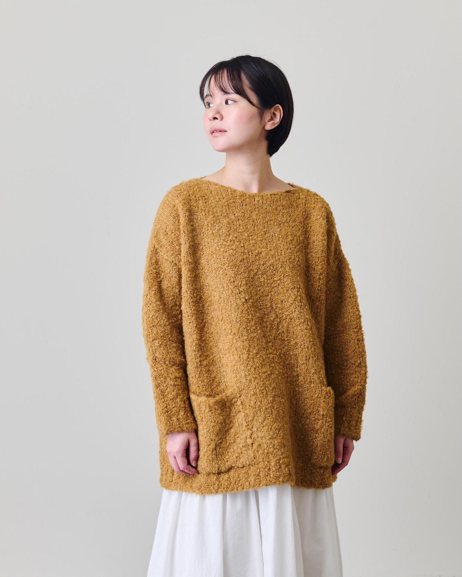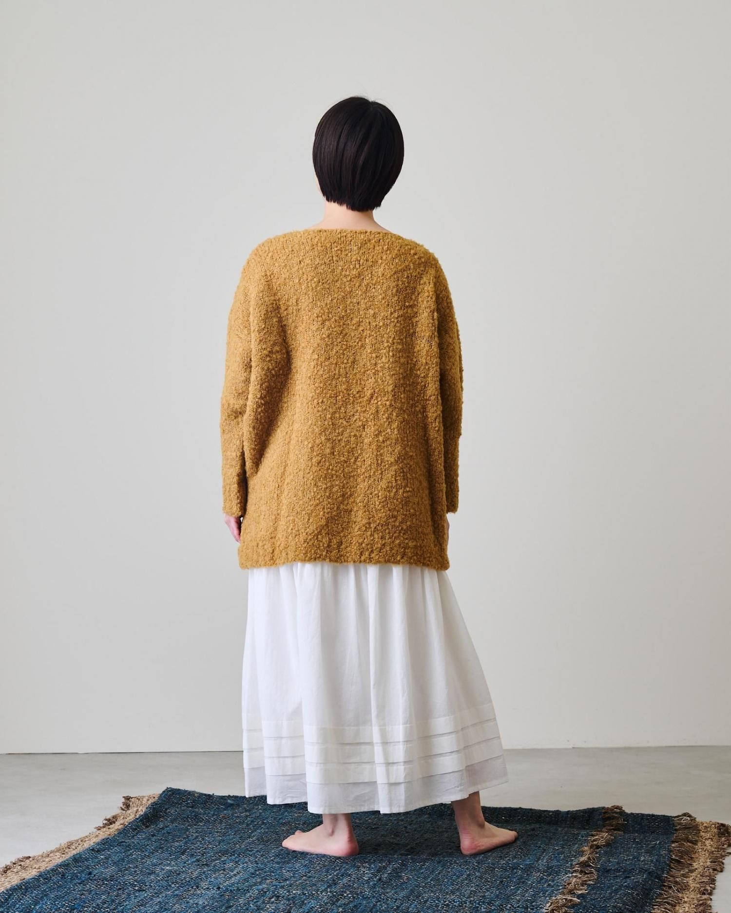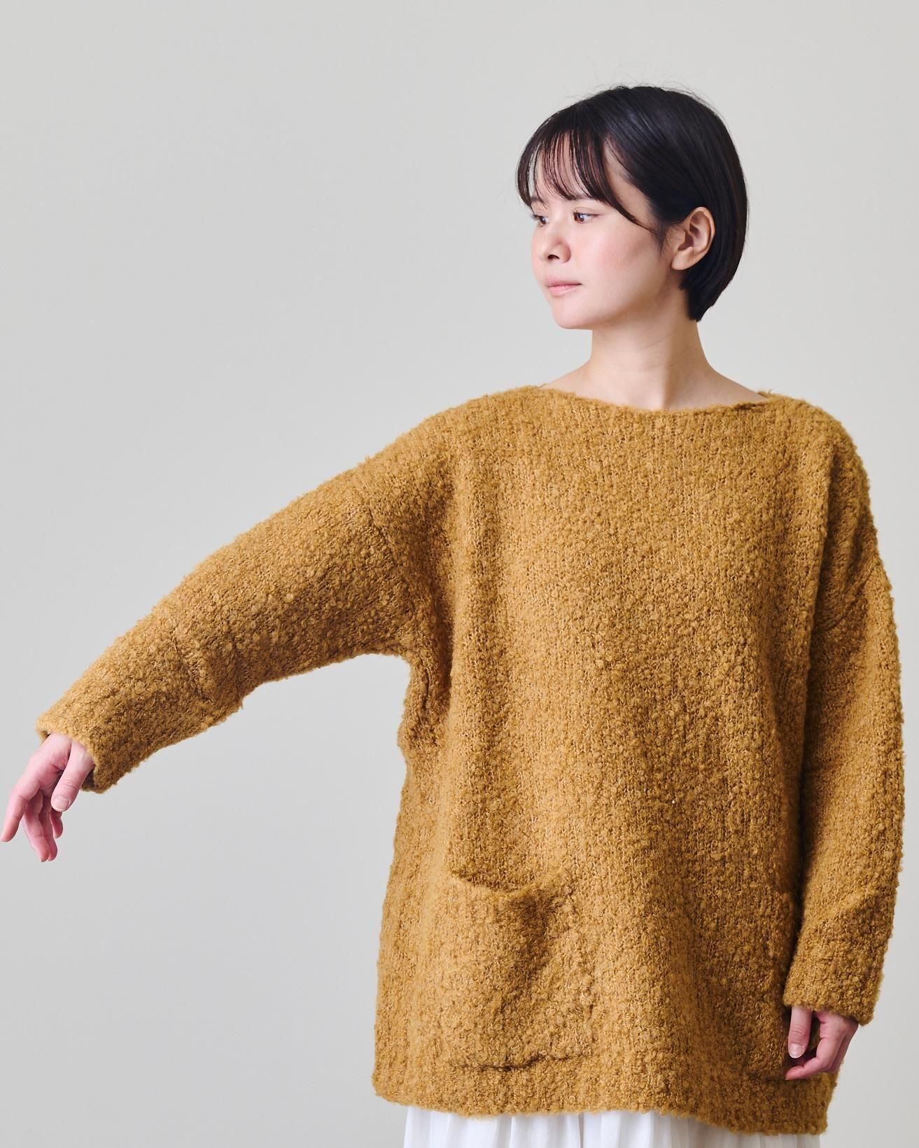 そんなアルパカをループヤーンにして使用したことで、厚みがありながらもふっくらとして柔らかく、軽くて保温性に優れたニットが出来上がりました。