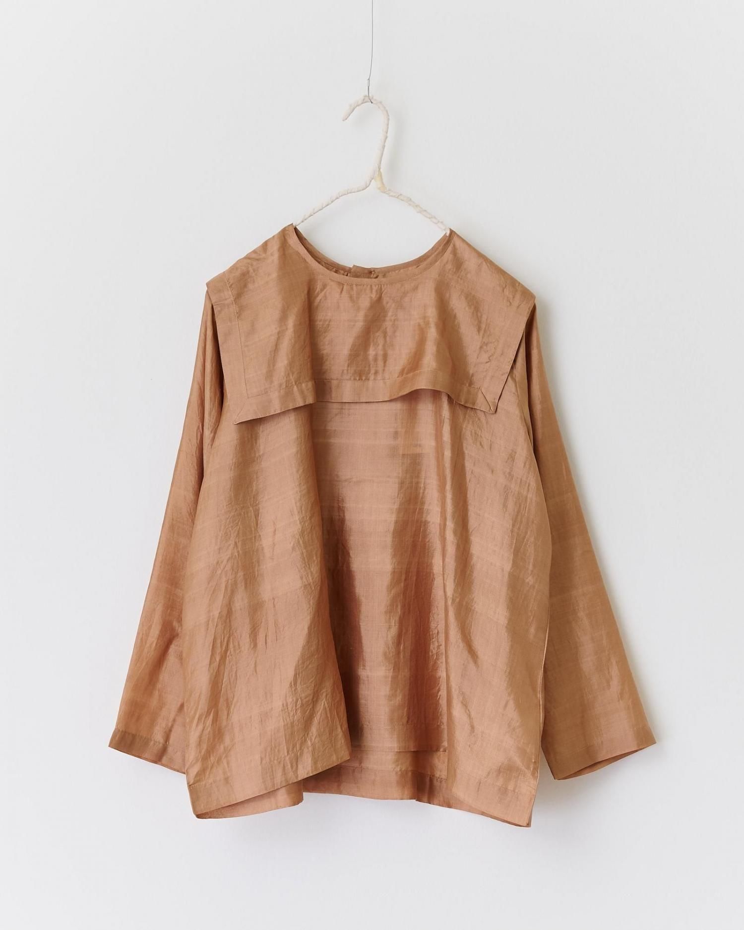 カディシルクで仕立てたブラウスは大きなセーラーカラーがポイントです。