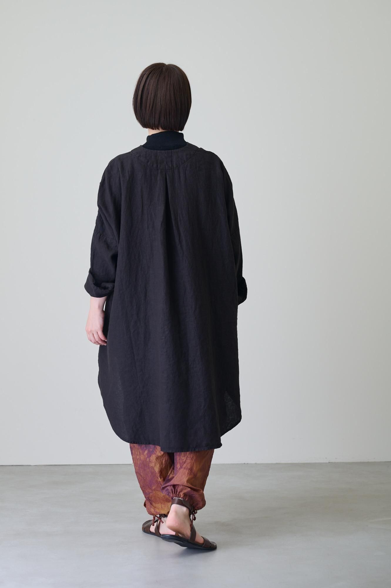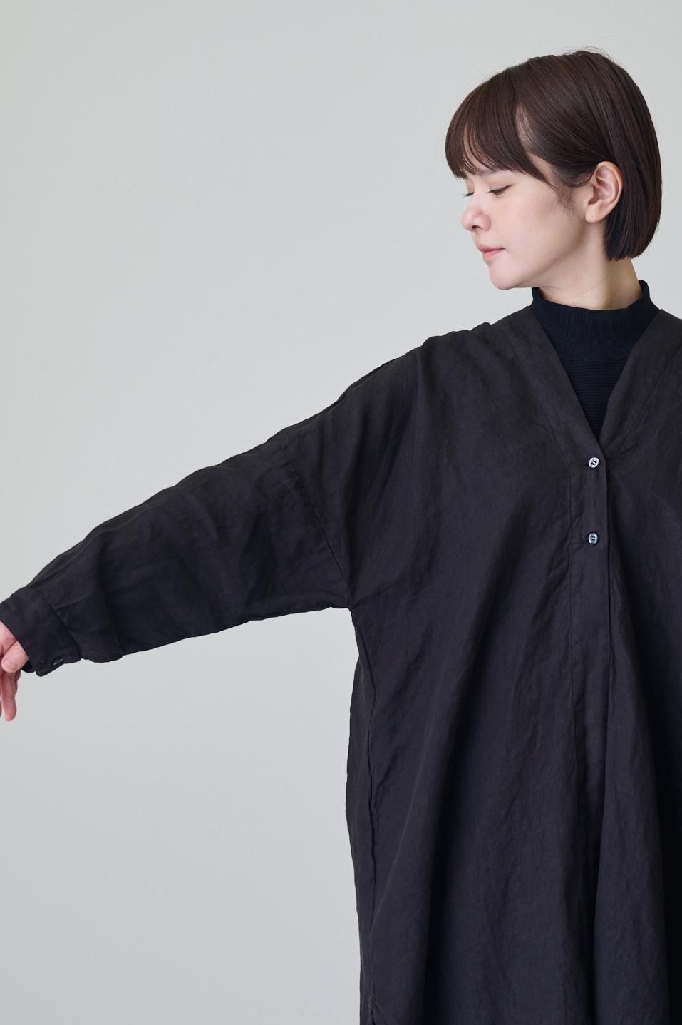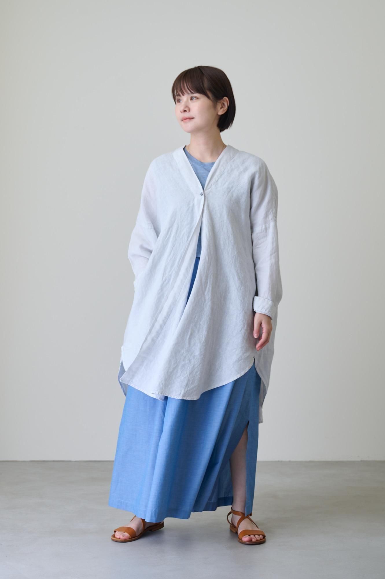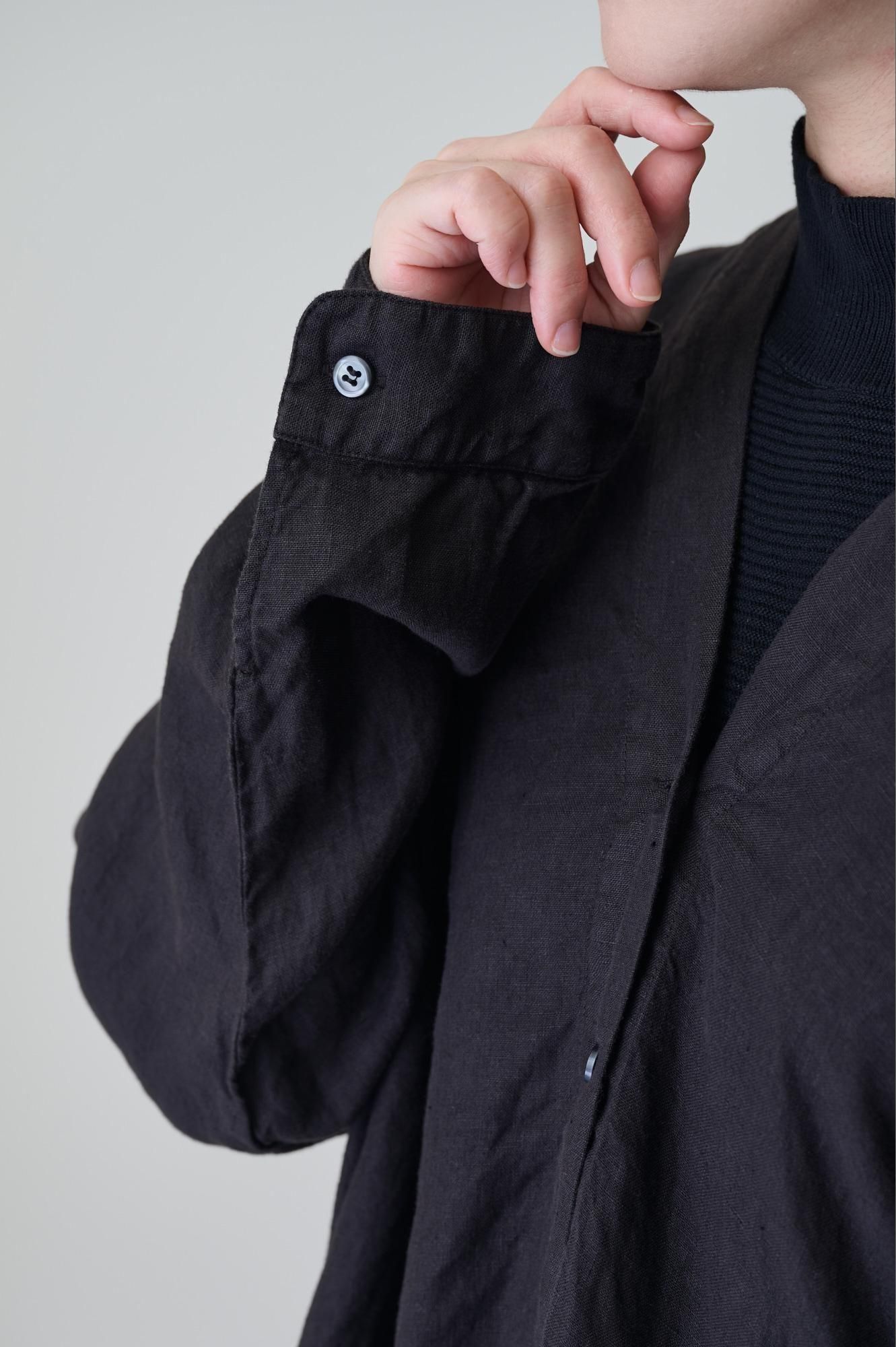 前ボタンを留めて着ると、ドレープの綺麗な 立体感のあるシルエットが顔を見せてくれます。
