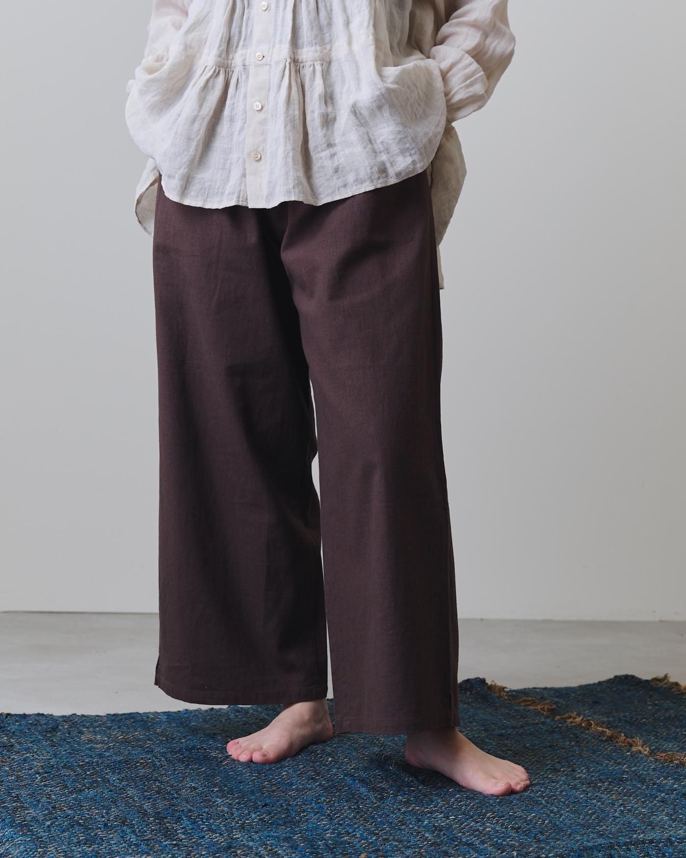 コットンとリネンを混紡した生地は、吸水性と通気性のバランスが良く、季節を問わず、一年を通じて心地良く着られます。