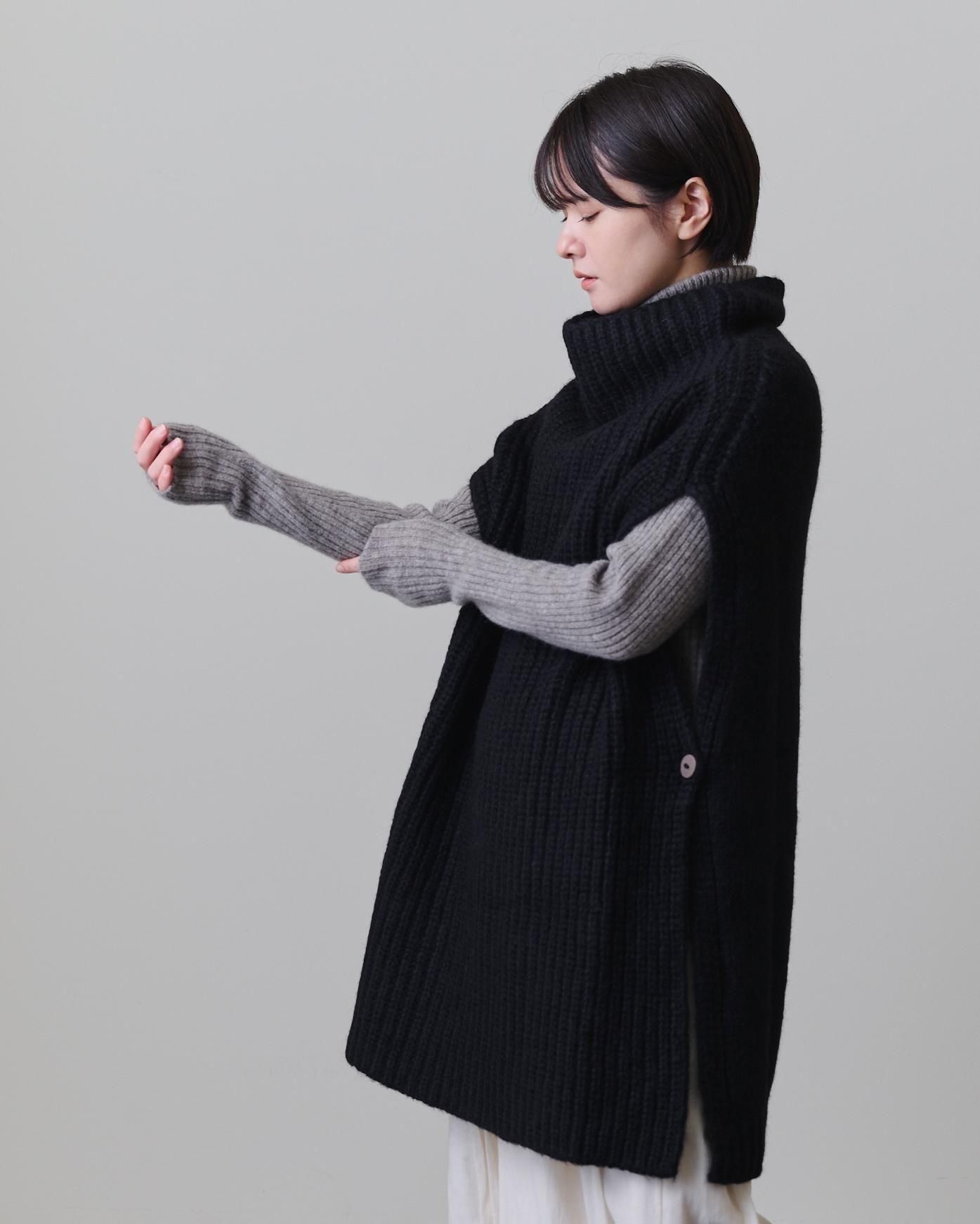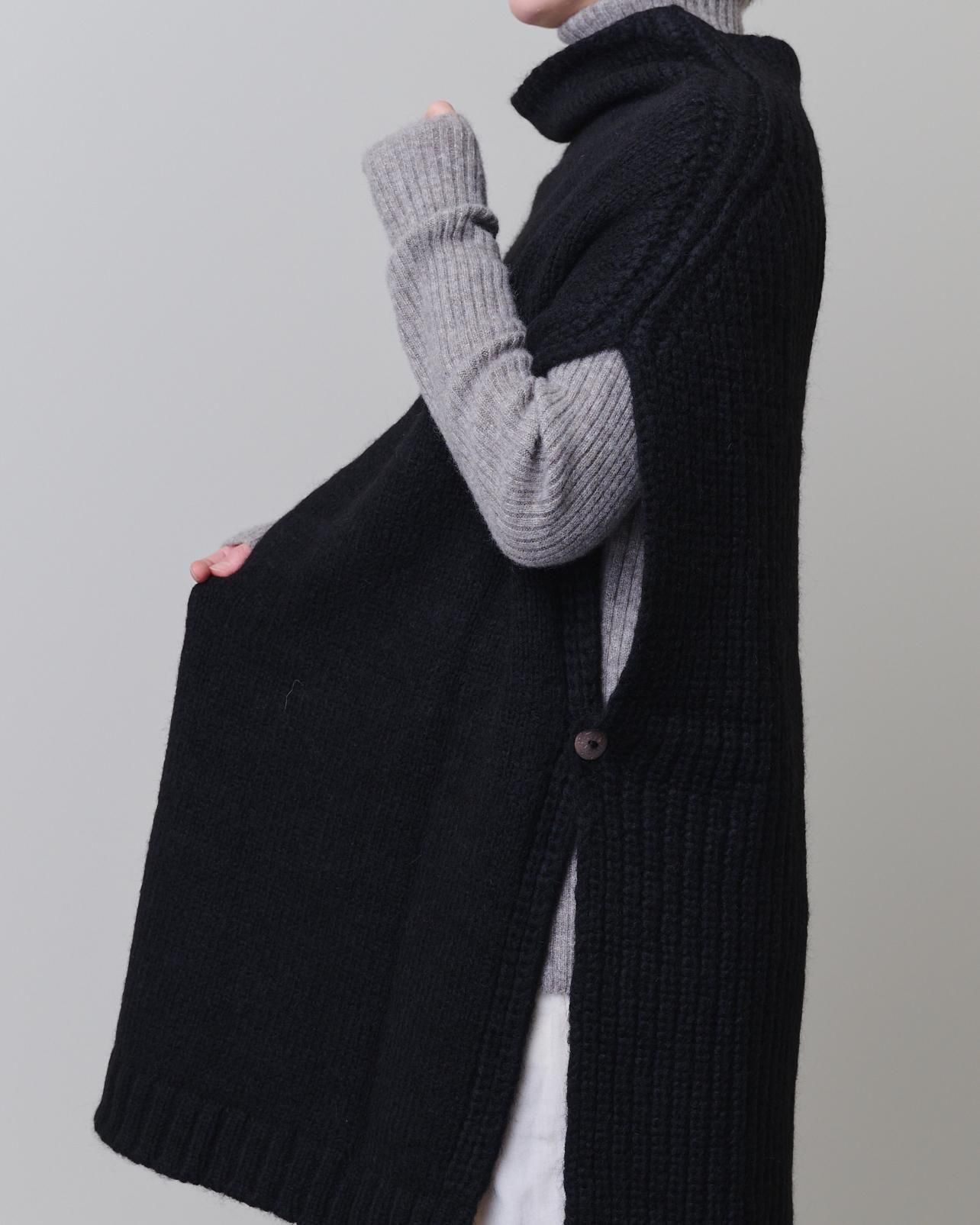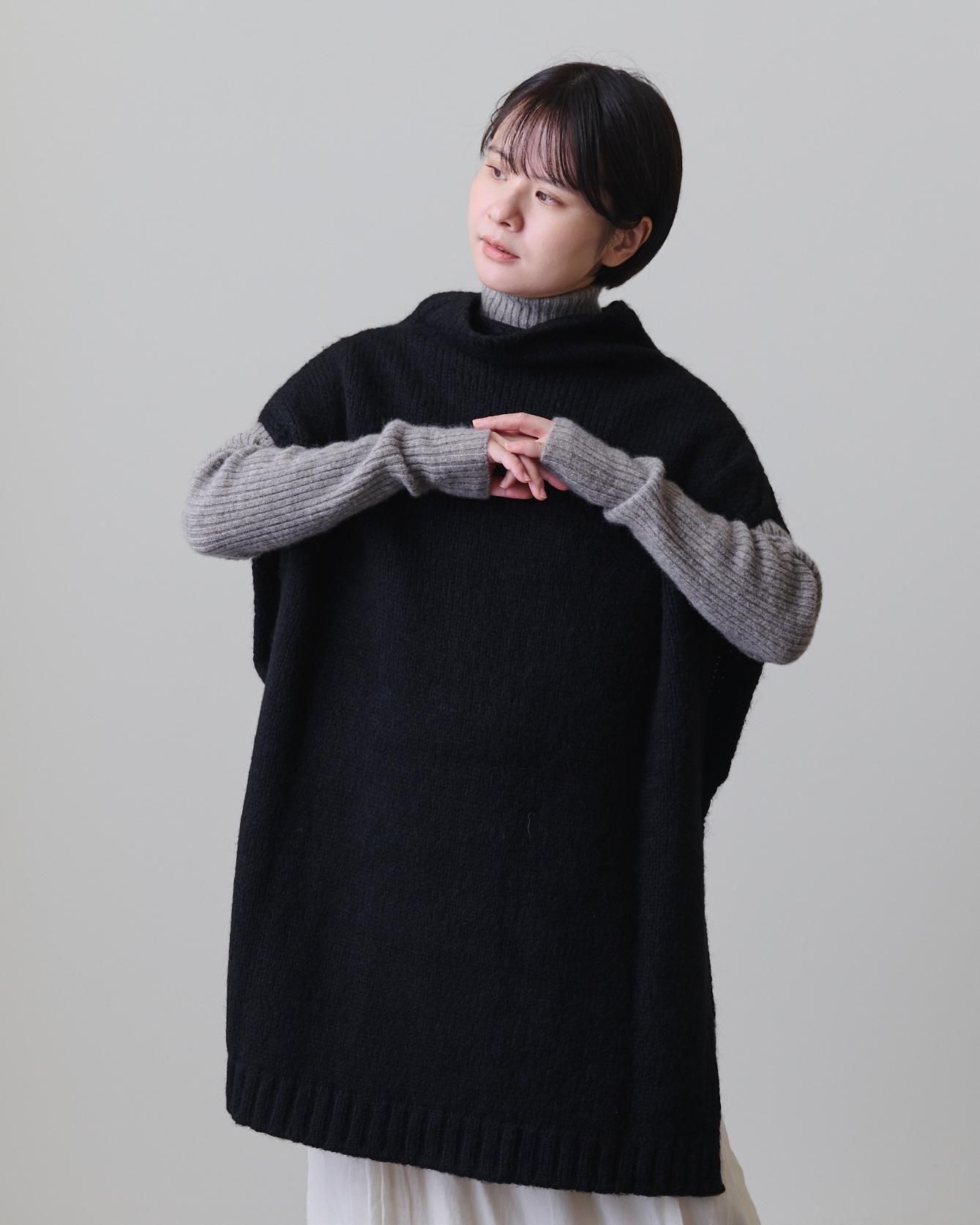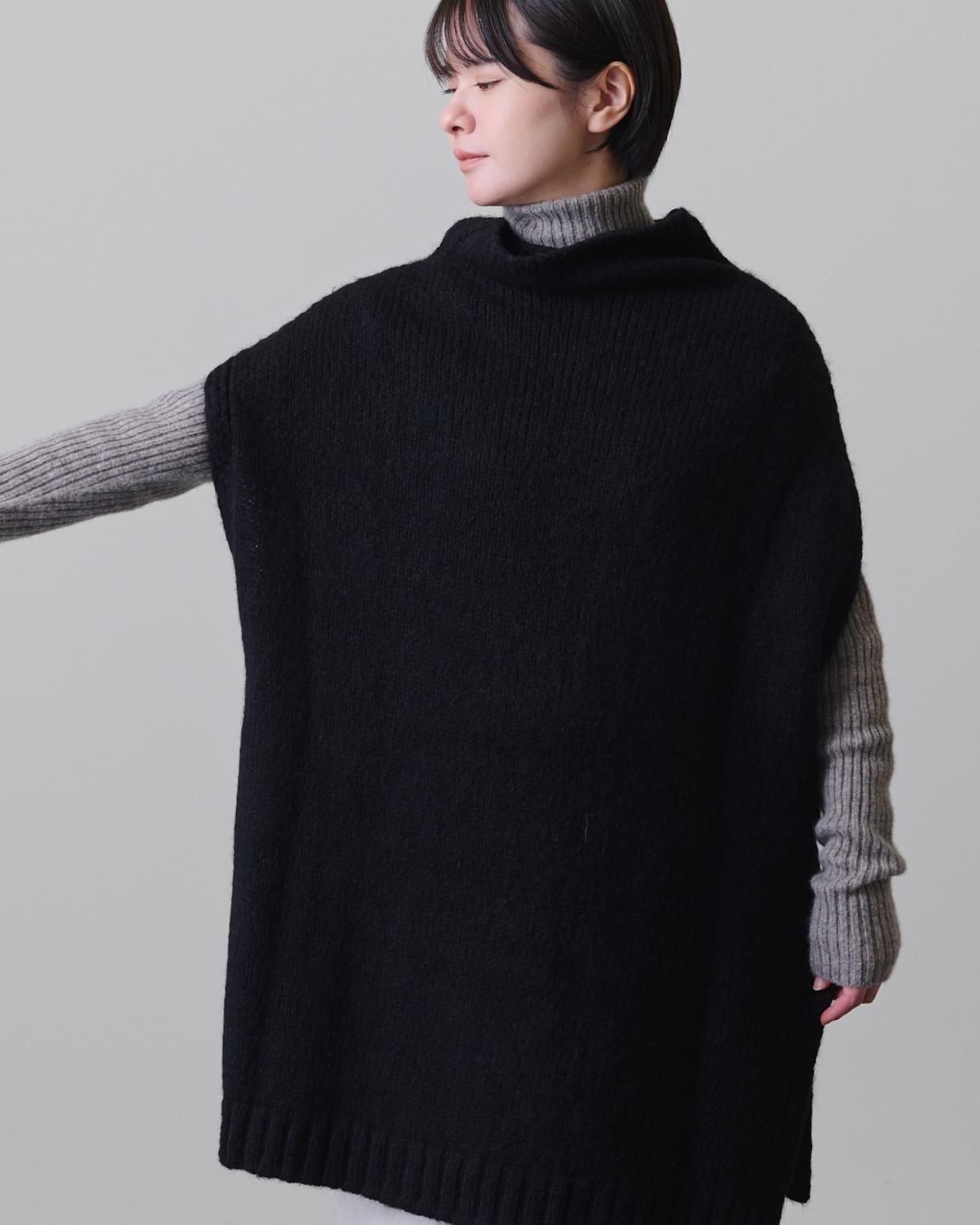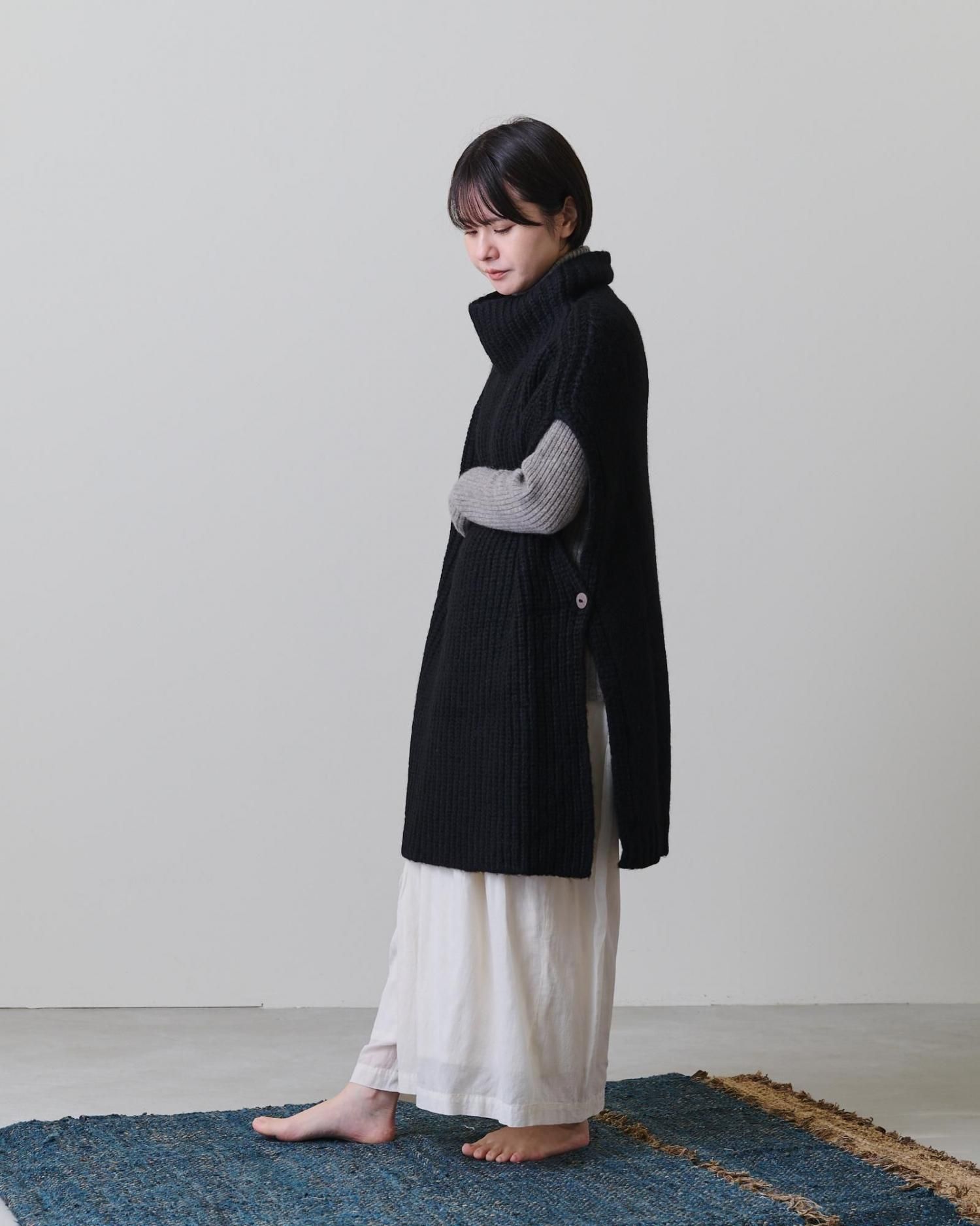 前後で編み方を変えたニットベストは、どちらを前にして着るかによって2wayの着こなしが楽しめるのが魅力です。