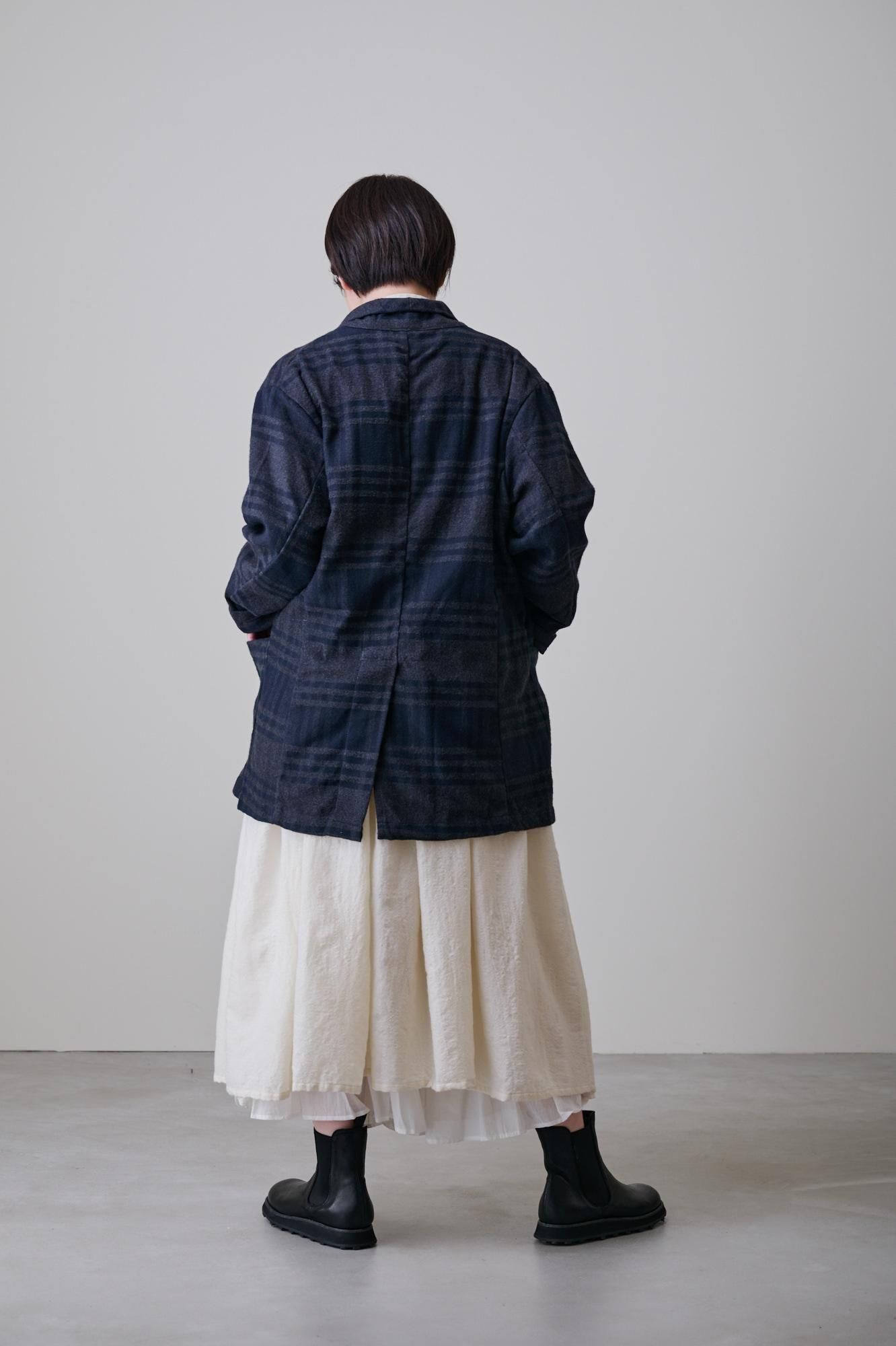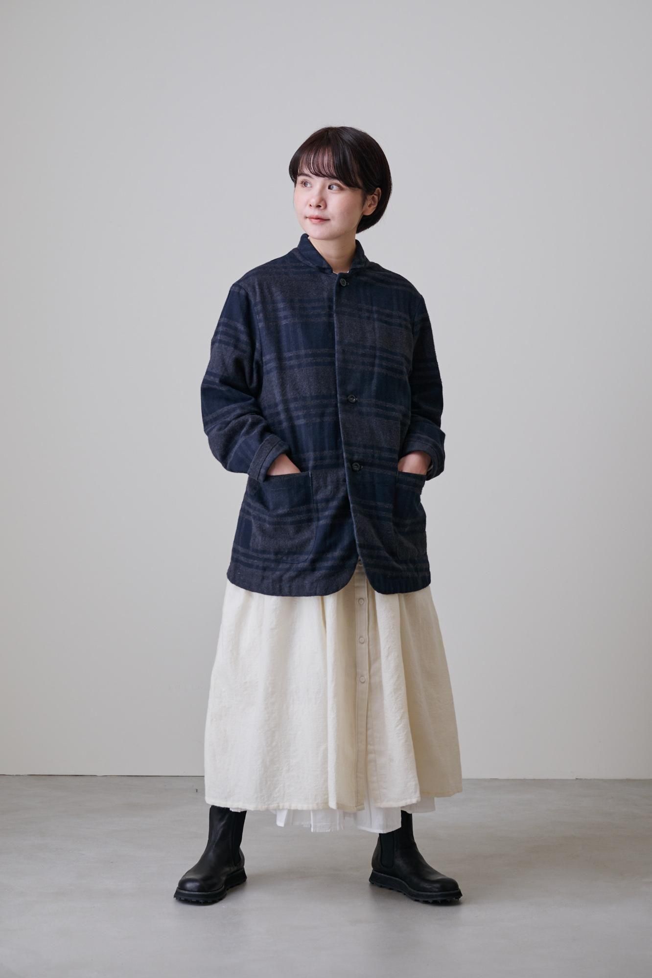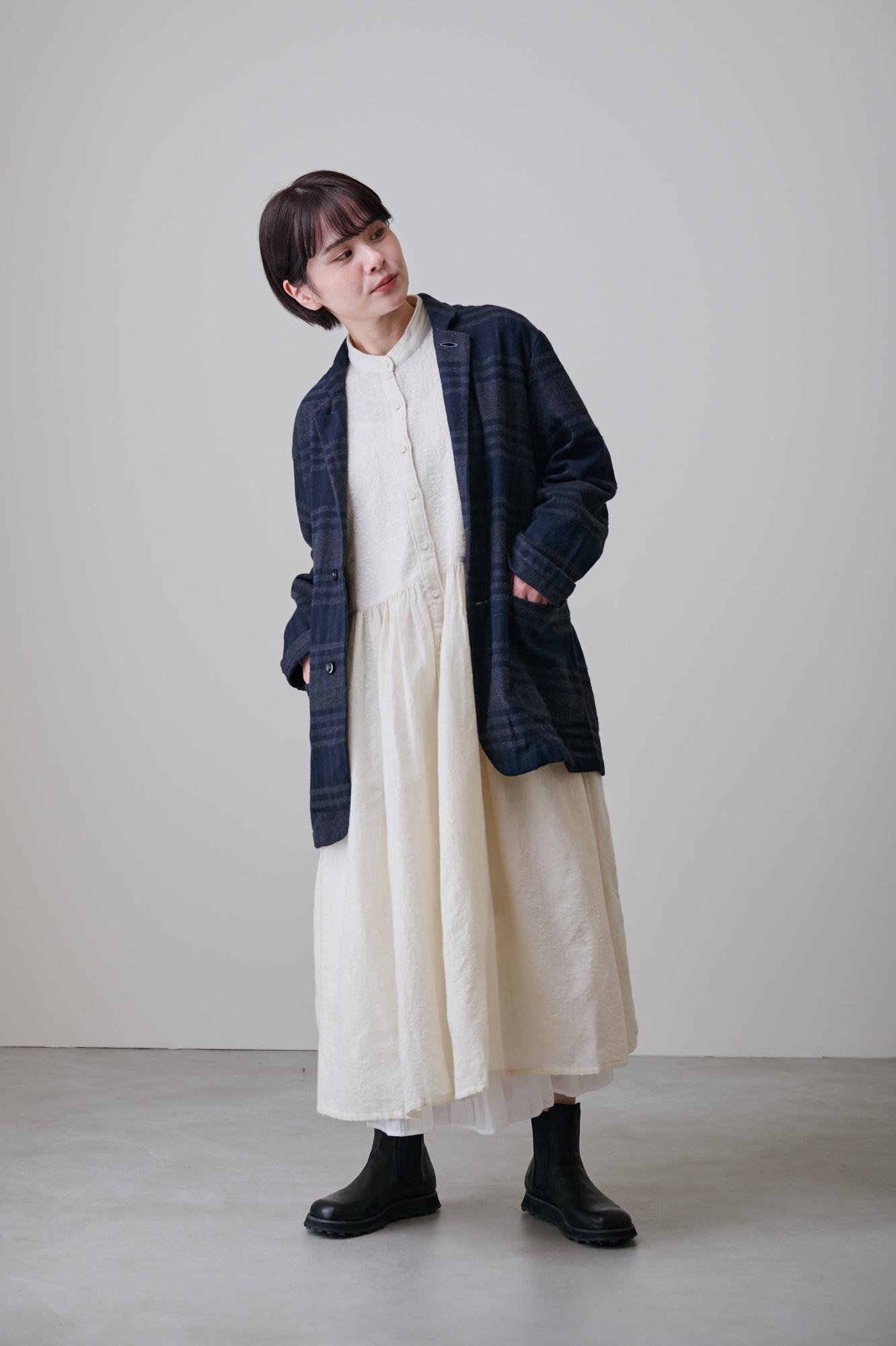 裏地のない一枚仕立てのシャツのようなジャケットは、秋や春にはアウターとして、冬にはコートの下に合わせて長い季節着回せます。