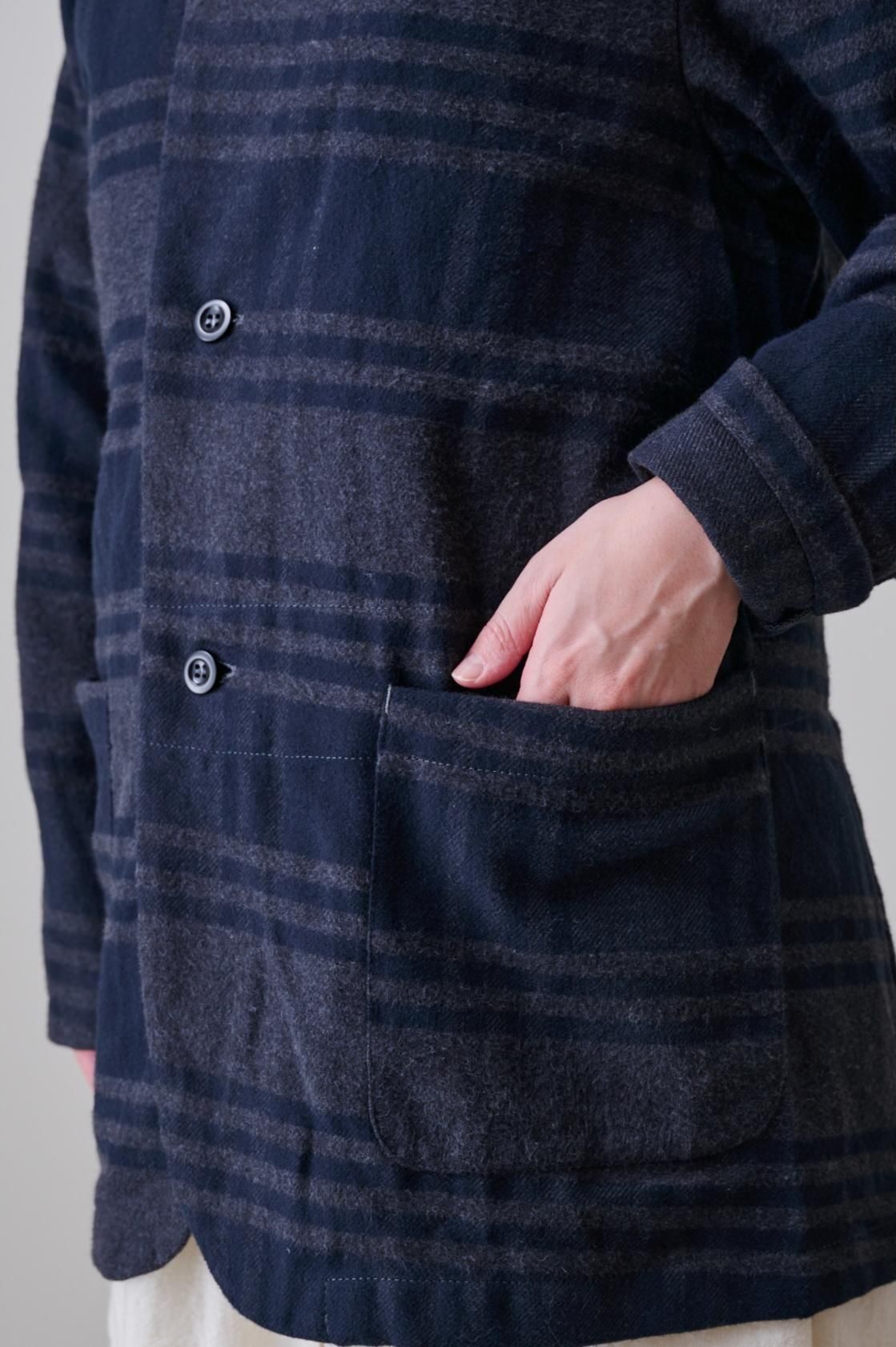 柔らかなコットンフランネルの生地で仕立てたジャケットは、シャツとジャケットの間のような存在。