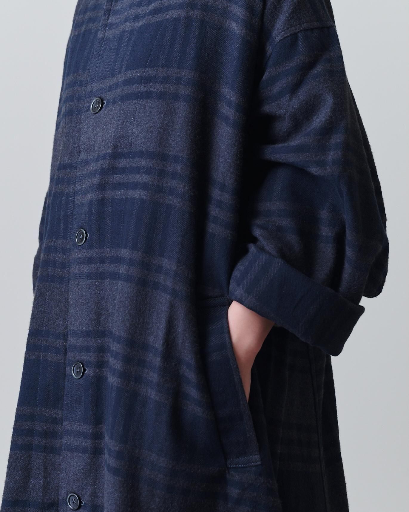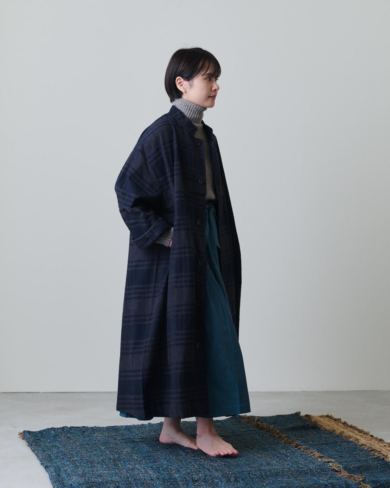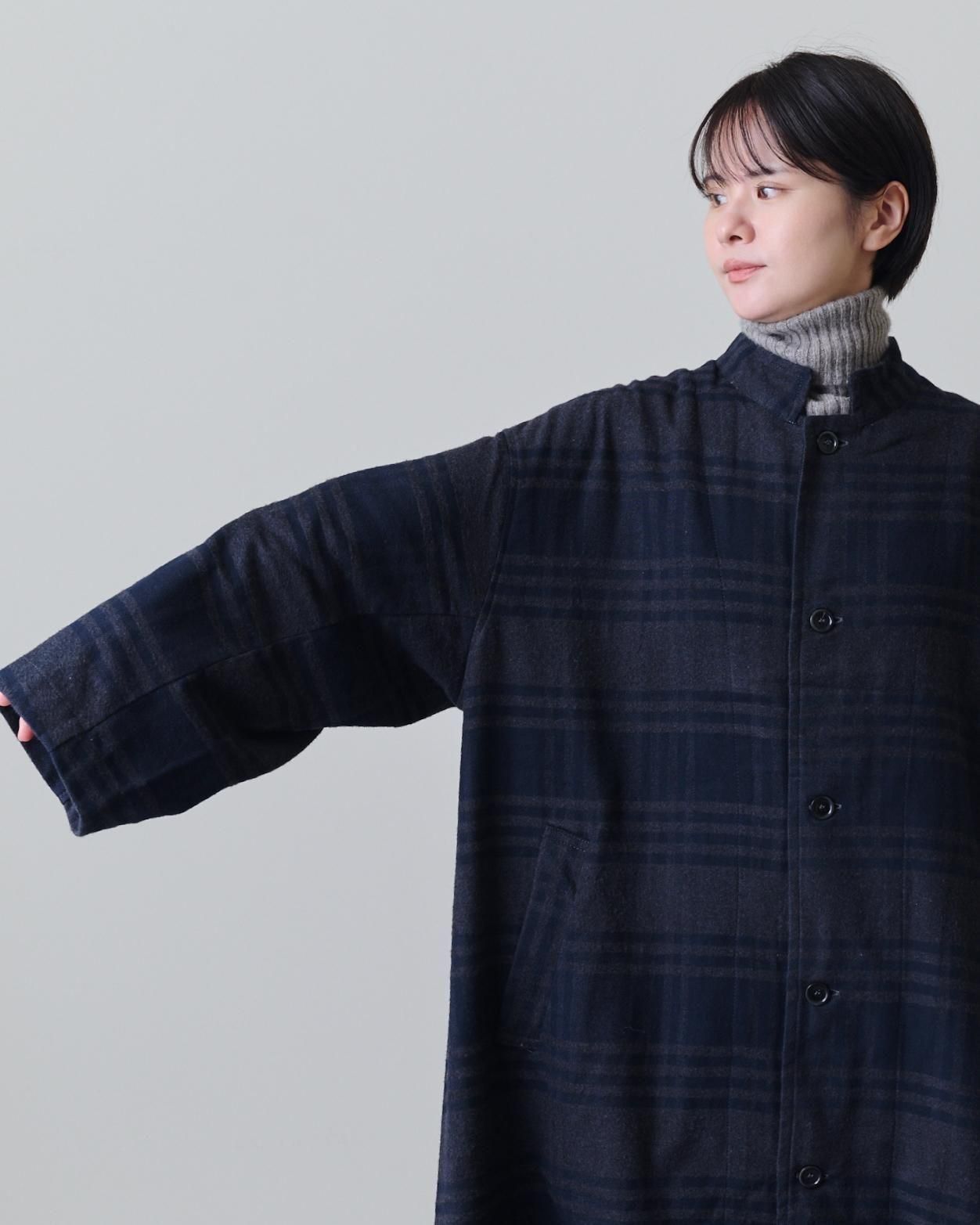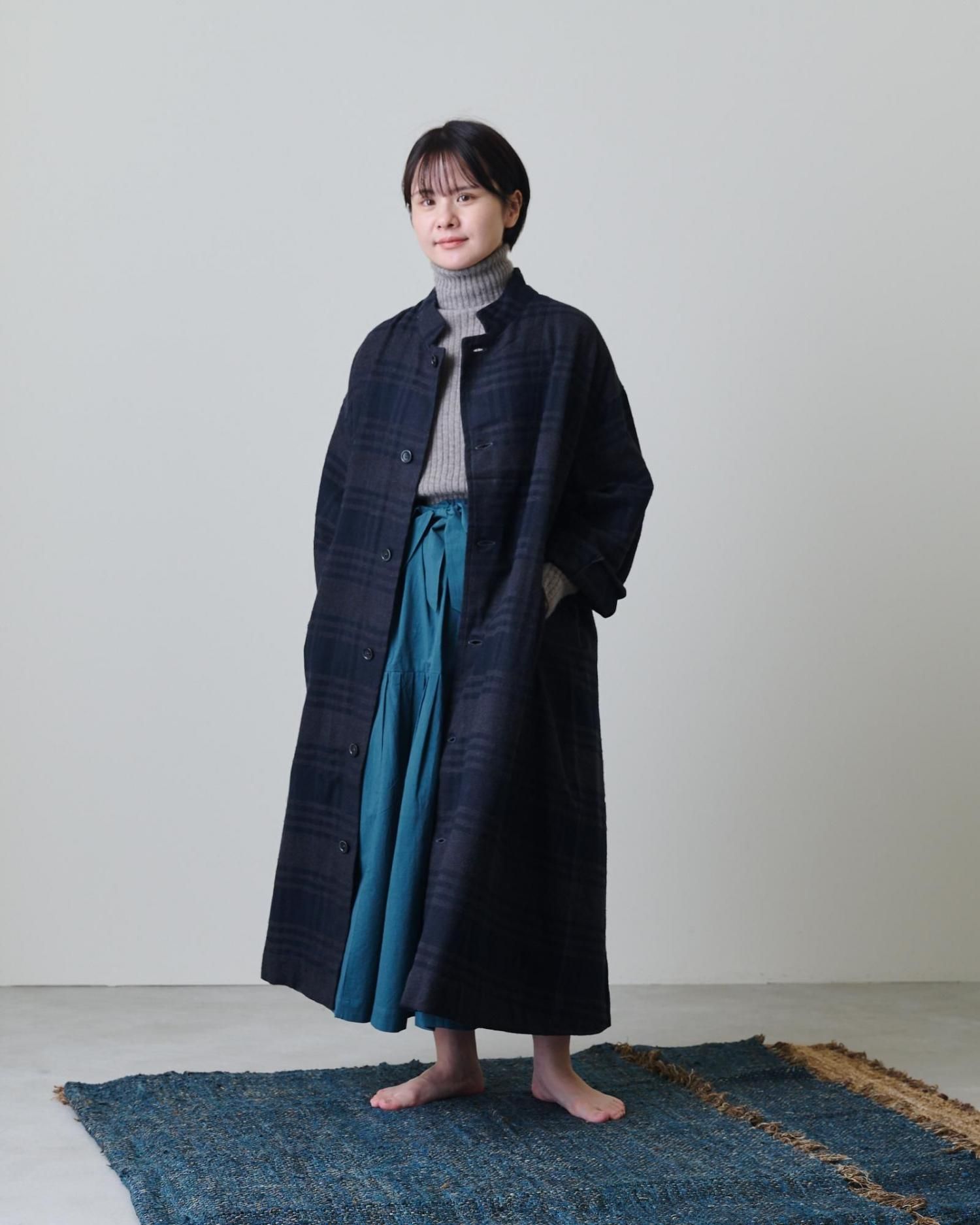 柔らかなコットンフランネルの生地で仕立てたコートは、ロングカーディガンのようなリラックスした着心地が魅力。