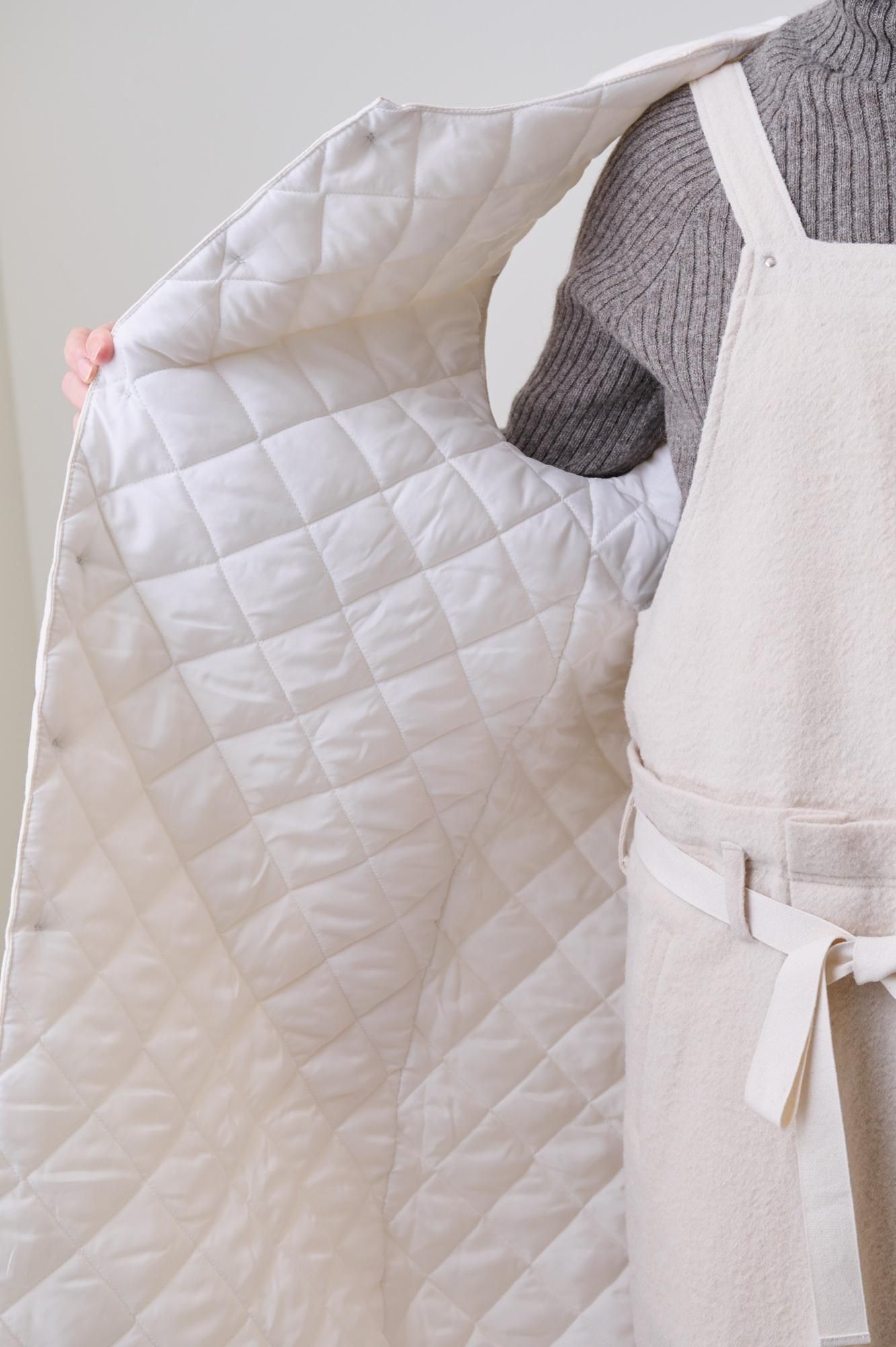 キルティングとの2枚仕立てにすることで、暖かさと同時に軽やかな着心地を実現しています。