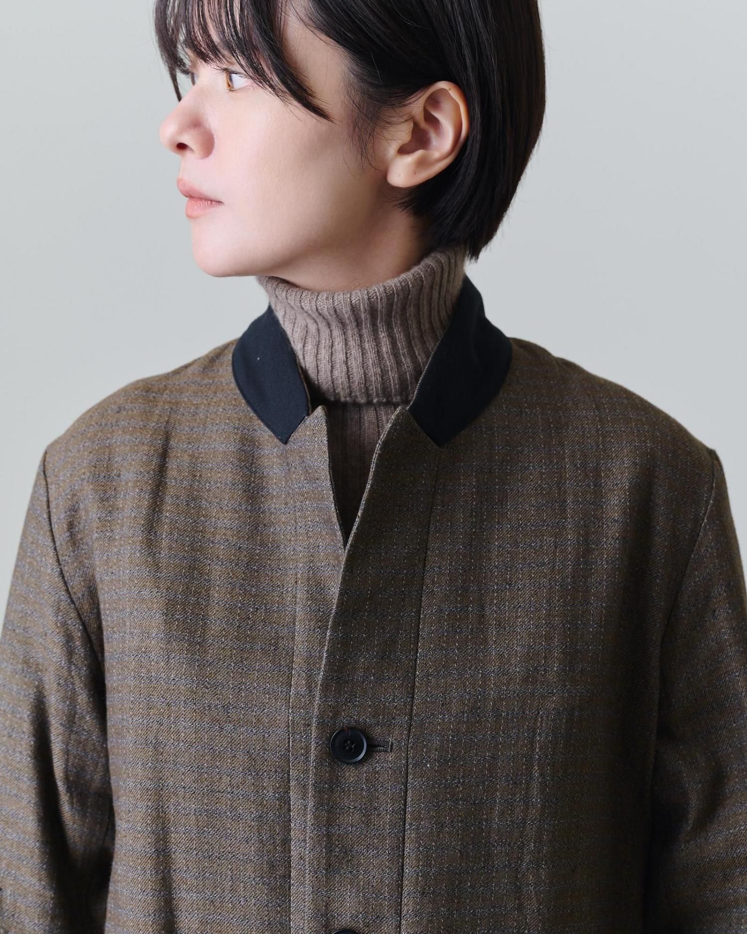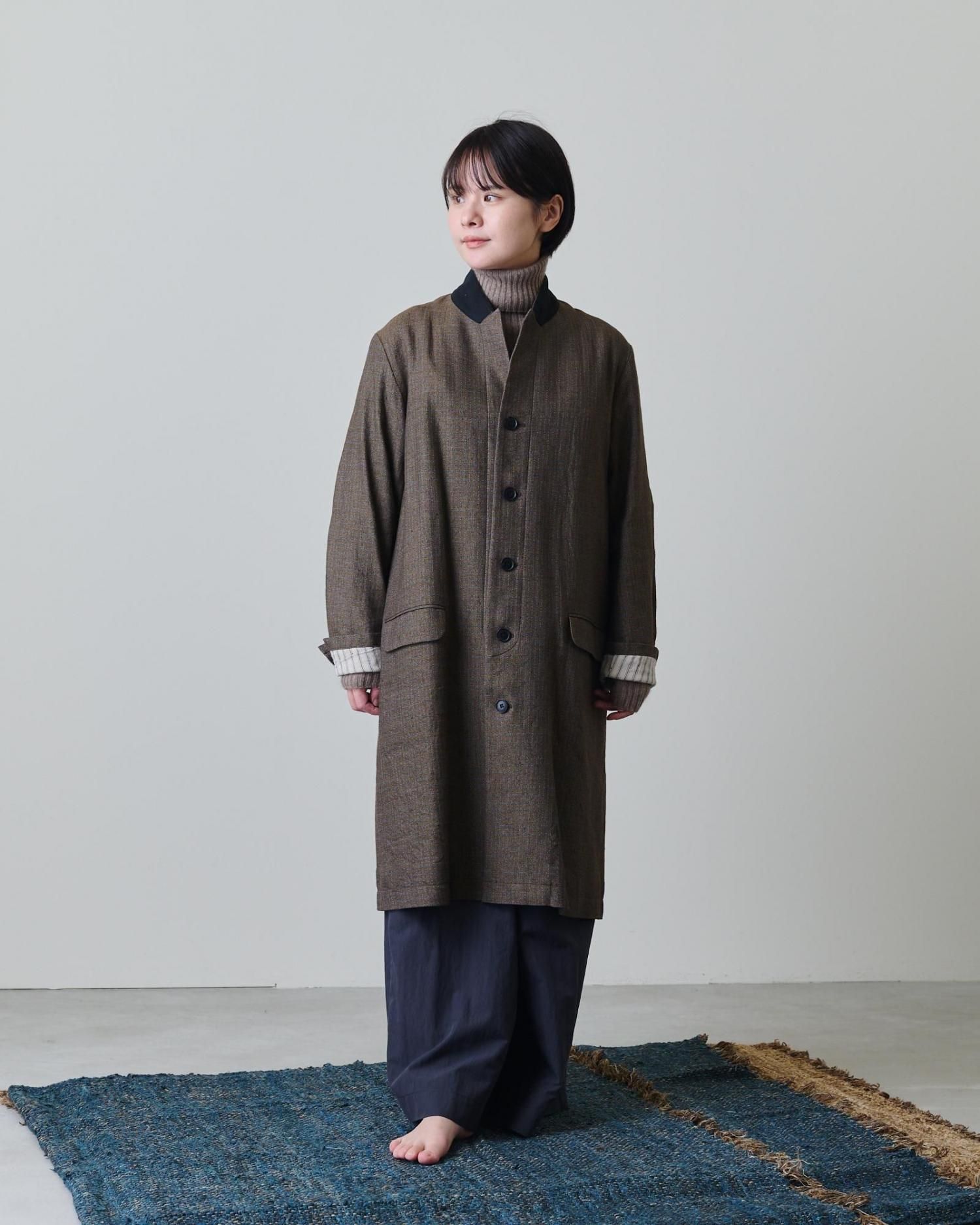 スッキリとした細身のシルエットが綺麗なアトリエコート。