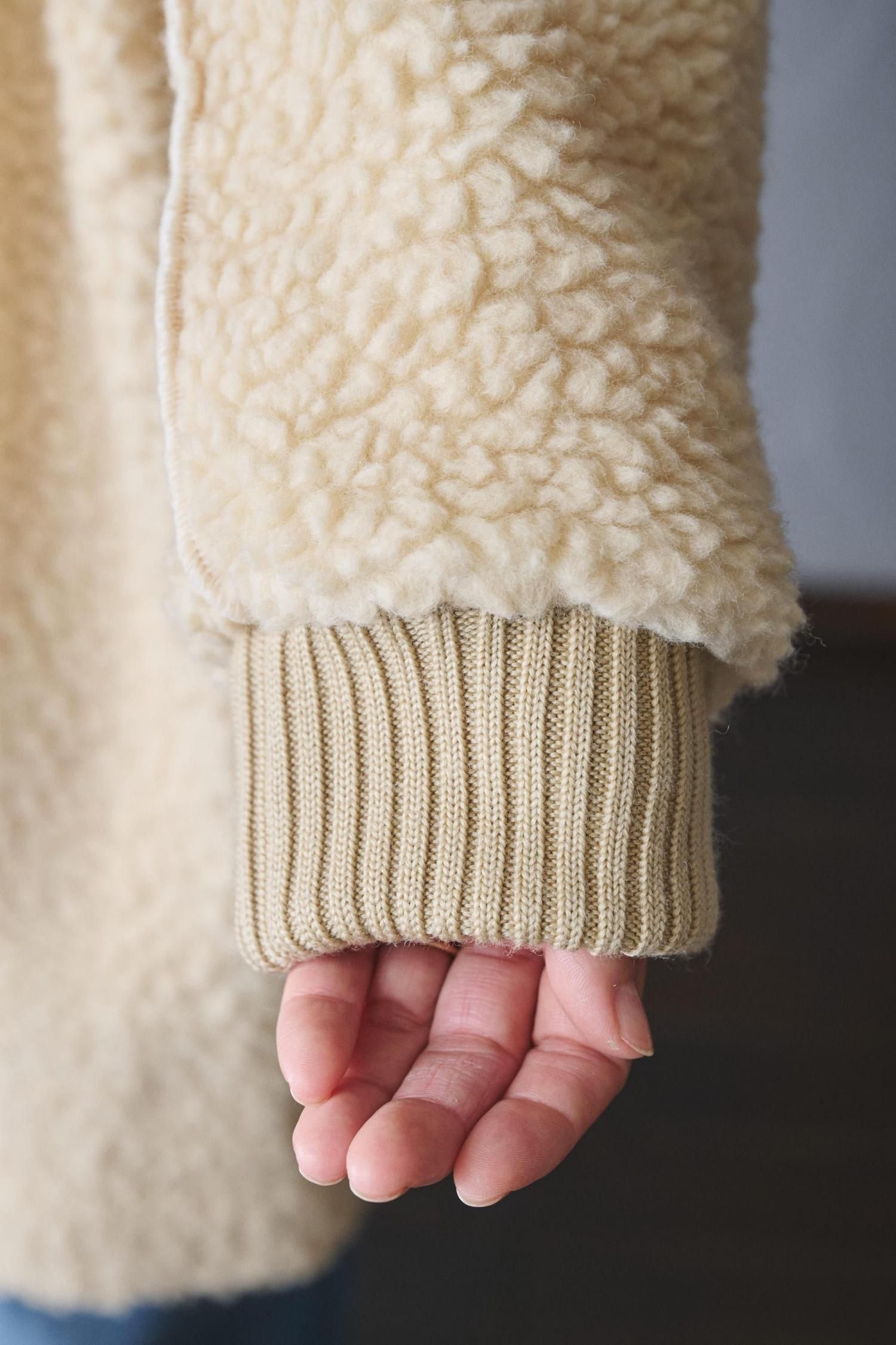 このコートに用いられているのは、イタリアのニット専業メーカーであるFURPILE社のボア素材です。